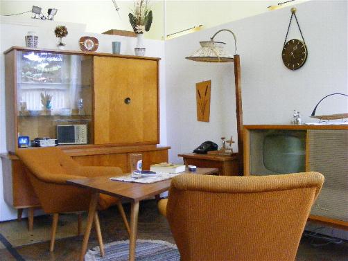 Des Weiteren ist dargestellt, in Wohnzimmern aus verschiedenen Zeitepochen, das Leben mit der Unterhaltungselektronik, von den Anfängen bis in die 70er Jahre.